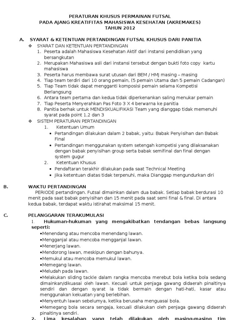 Peraturan Futsal Turnamen - We did not find results for:. We did not find results for: Maybe you would like to learn more about one of these? Check spelling or type a new query.